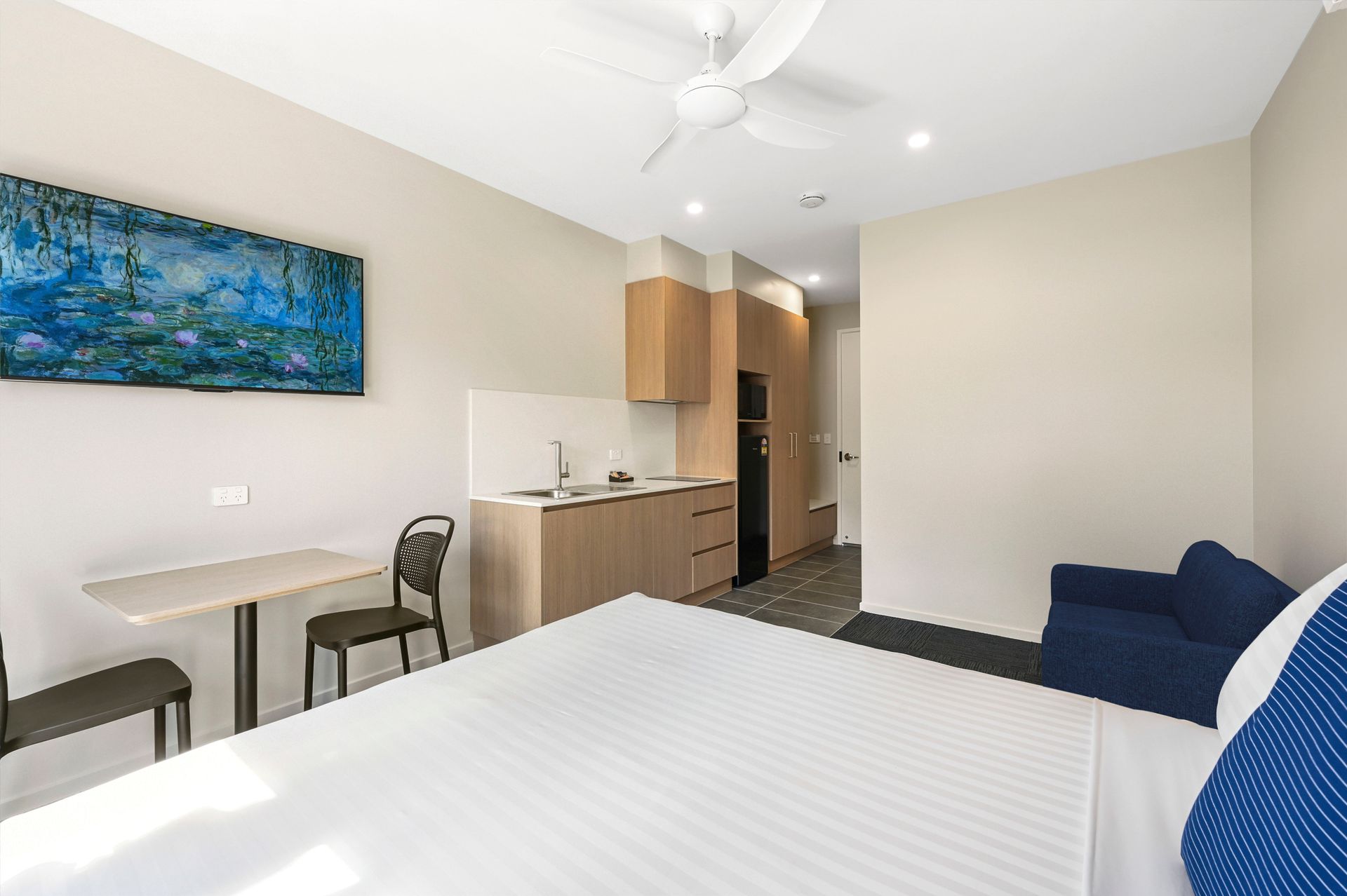 Avenue West Studio Units is the second property from the trusted team behind Avenue Motel Apartments, offering 34 modern, self-contained studio rooms in Toowoomba. Each unit is designed for comfort and convenience, featuring smart technology, soundproofing, and stylish finishes.
